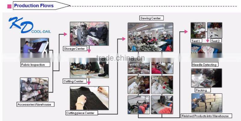 We(Guangzhou cooldail clothing trade co.) , located in changjiang garment city, 929 renming road north, yuexiu district, guangzhou China, backed up with a self-owned factory, have been specializing in OEM&Custom since 2005, and reputation has attained from customers throughout the world, especially laudatory words from North America, West Europe, South America, and Southeast Asia. We are fully dedicated to the exquisite quality of our products, passion of innovation, fulfillment of customers'. Furthermore, we always adhere to the excelsior and pursue outstanding for aim. Quality first and on-time delivery are our principles.