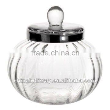 Argent Candy Dish With Silver Lid, Glass Cookies Bowl Jar