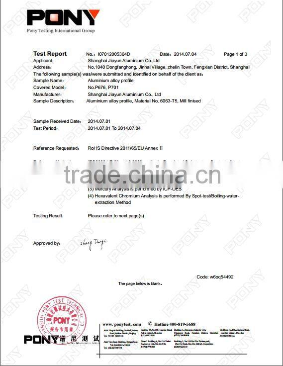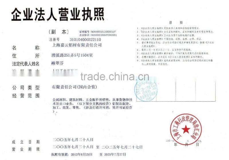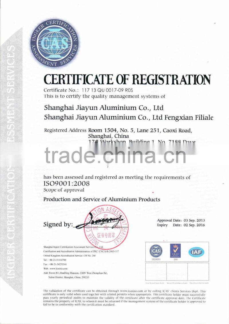 Shanghai Jiayun Aluminium Co., Ltd. Locates at Fengxian district of Shanghai. It is a modern company which is a collection of R & D, production and sales of aluminium and also its deep processing products. Jiayun adopts the world-class production lines brought from Japan, Taiwan and so on. It gathers complete technical processes such as mould making, casting, extruding, anodizing, electrophoresis and powder coating. Now the company specifically develops aluminium deep processing like precision cutting, milling, punching, drilling, tapping and also the assembly of the aluminium products, etc. Jiayun also adopts the quality management system ISO9001:2008 and the environmental management system ISO14001:2004. It develops aluminium extruding in sync with aluminium deep processing. With 10 years of R&D, Jiayun products have reached to one hundred thousand varieties, which are widely used in technology, machinery, electronics, appliances, automotive, construction and other industries. It supplies mature deep processing products around the world such as assembly barrier, heat sink, display equipment, motor shell, aluminium furniture, aluminium ladders, LED lamps & its assembly accessories, solar panel frames and aluminium brackets accessories, etc. Jiayun has always been carrying out the belief of "quality first, sincerity first" in face of all customers around the world with its first-class service.