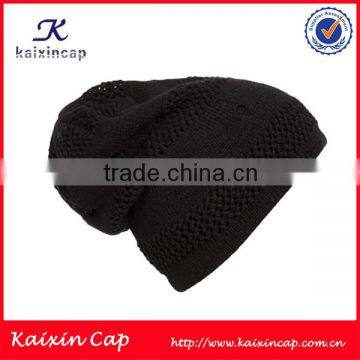 custom high quality Womens Casual Cut Out Knitted acrylic mix wool material slouch Beanie Hat cap Black