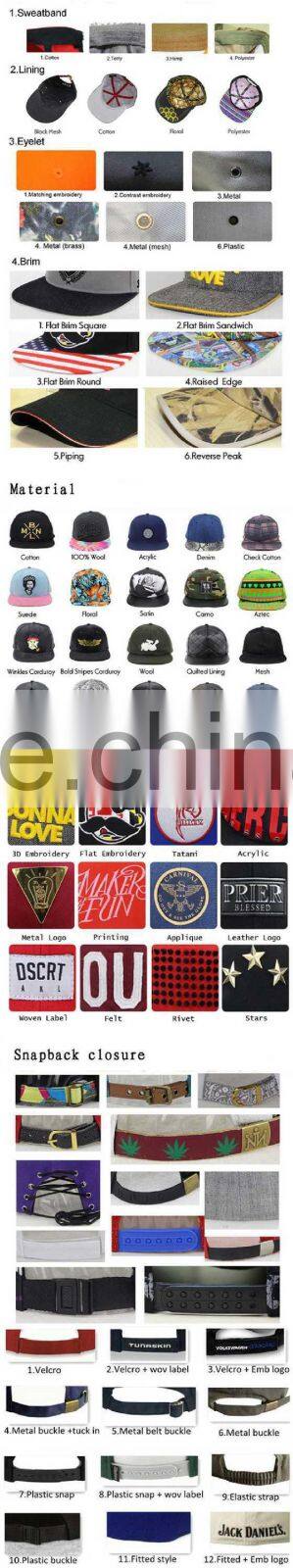 snapback closure / nylon/metal badge / leather strap/ as your requirement |