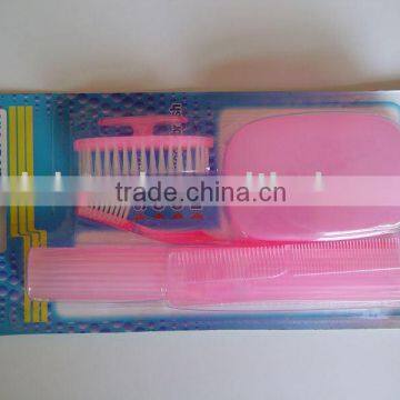Travel Kit:The kit include 1 toothbrush holders,1 soap holder,1 nail brush,1 hair brush and 1 toothbrush in blister card.