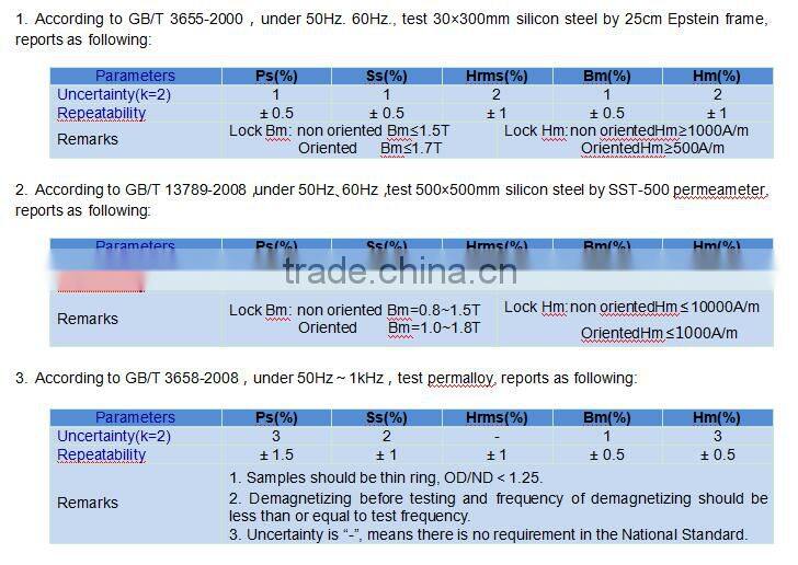 3.Test Samples: hot&cold rolled silicon steel(oriented or non-oriented), permalloy, amorphous alloy and nanocrystalline.