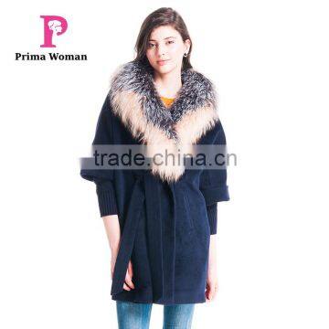 Autumn and winter length seven points women coat with silver fox Fur collar cashmere overcoat |