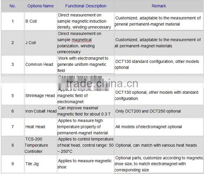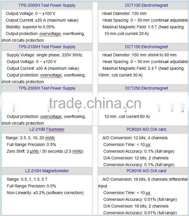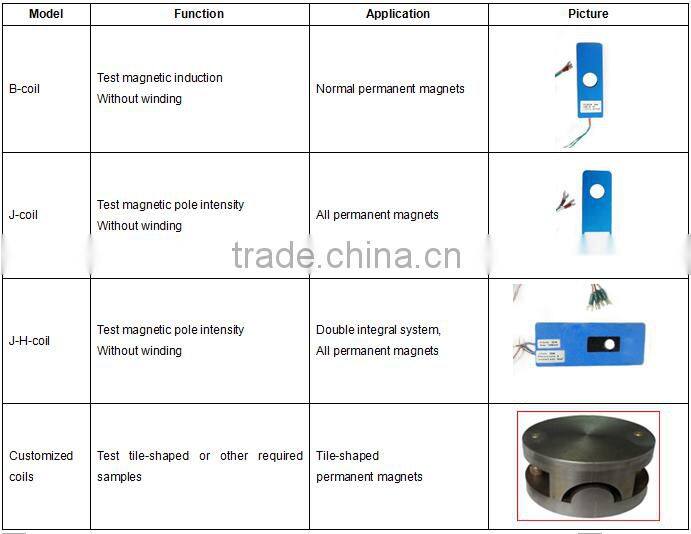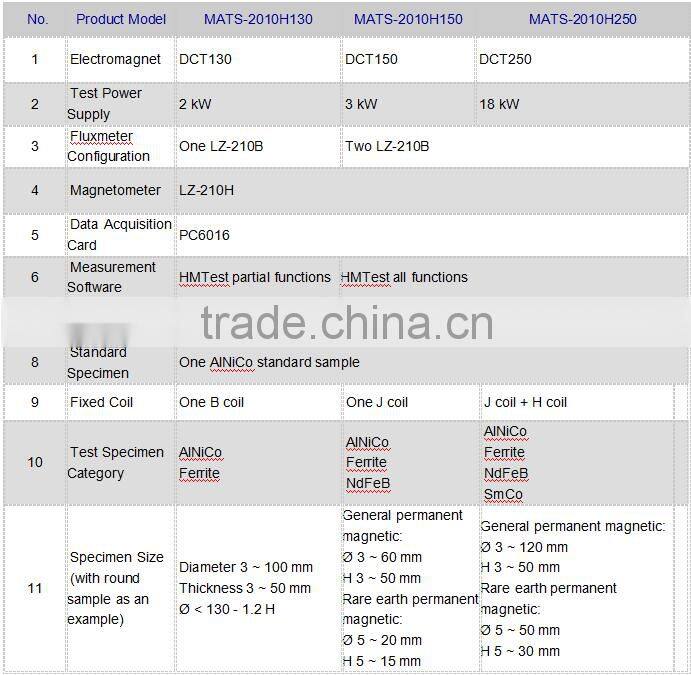 1. Automatic measurement on saturation hysteresis loop and magnetic characteristic parameters of generally permanentmagnet material such as Ferrite, Rubber & Plastic Magnet and AlNiCo, Js, Br, HcB, HcJ, (BH)max