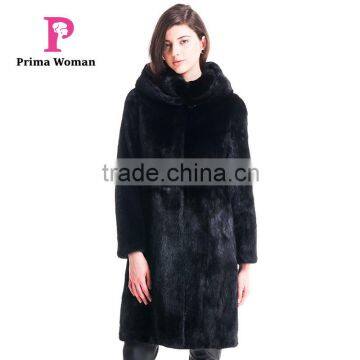 2015 New Design Medium Length Winter Women Coat With Mink Fur Hat Overcoat