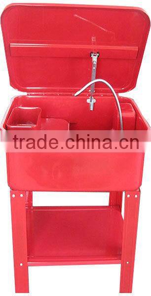 1) Rugged welded steel 2) Convenient removable work shelf. 3) Parts basket for snaking small parts in solvent. 4) Self-latching fuses linked fine cover. 5) electric requirement: 110V/60Hz (240V/50Hz) solvent pump. 6) Max pump output through spigot: Recirculates 2.7~3.3 litre / min of solvent. 7) Tank capacity:20Gallon 8)Solven capacity: 12Gallon |
