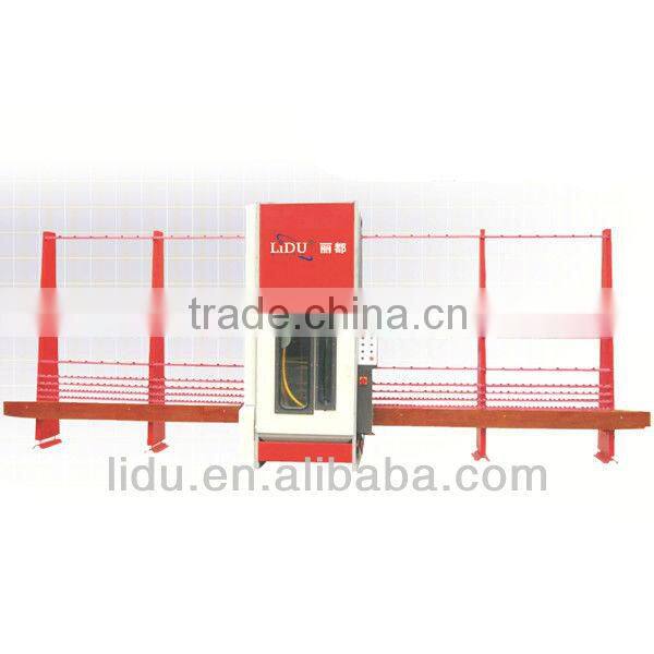 This is a PLC control automatic vertical glass sandblasting machine. It is used for sandblasting engraving various kinds of patterns on flat glass with thickness 5 ~ 50 mm. The mechanic transporting is automatically controlled by photoelectric switch and stroke switch. Glass is transported to the mouth of the spray gun by synchronous belt. It blasts sand by moving up and down (the space can be adjusted according to glass height). The transporting of the synchronous belt is stable, high effective and easy maintained. The driving mechanism equips a dustproof cover to effect the normal working and daily maintenance for a long time. It adopts touch screen control. The characteristics of this machine: stable running, powerful function and convenient operation. It can detect the position of the glass automatically when blasting sand.