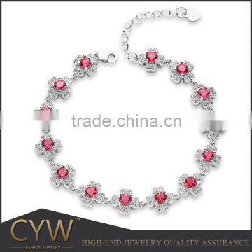 CYW Guangzhou Jewelry Factory Fashion High Quality Red Color Zircon Ss925 Silver Bracelets