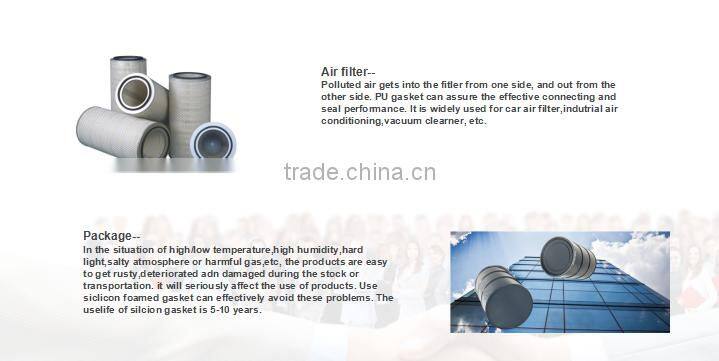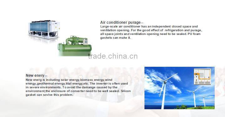 PU is a product of 2-component Polyurethane. It adopts FIPFG (foamed-in-place foam gasket) technology which can foam on the workpiece directly. The finished product is a soft and elastic foamed gasket. This gasket is made from component A and component B. Component A is mainly polybasic alcohol, Component B is a hardener-isocyanate. After mixing A and B according to a certain proportion and completely foaming, the mixture will become a soft foamed sealing strip.