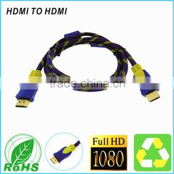 Blue and Yellow HD TV Cable Sleeving Braided Cable High Speed Connect Wire For 3D TV Support 1080P Cable