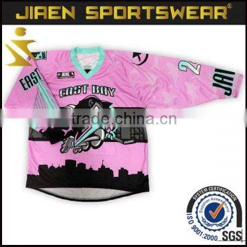 Mens 2016 Custom Design Cheap Sublimation Team Hockey Shirts Sublimation Polyester Custom Ice Hockey Jersey Pink Hockey Jersey
