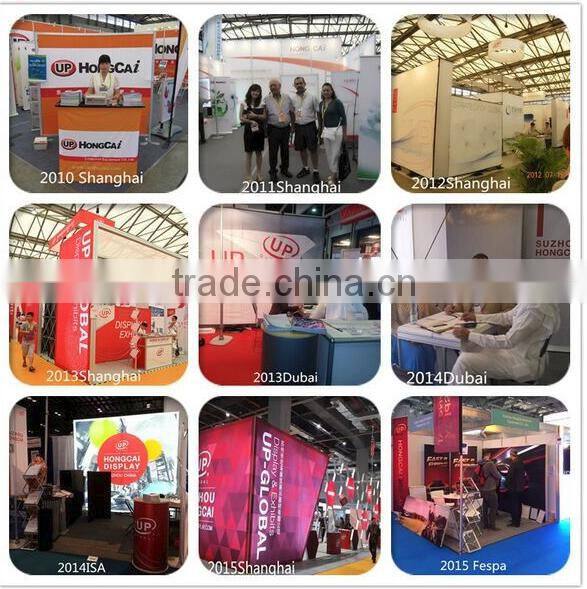 We are an experienced professional factory of all kinds of portable display stands 7 years. We establish on 2008, our products export more than 60 countries; our clients are satisfied with our quality and service. We aimed on long-term good business relationship with our clients, not just one order. So we pay much more attention on details, service and quality.