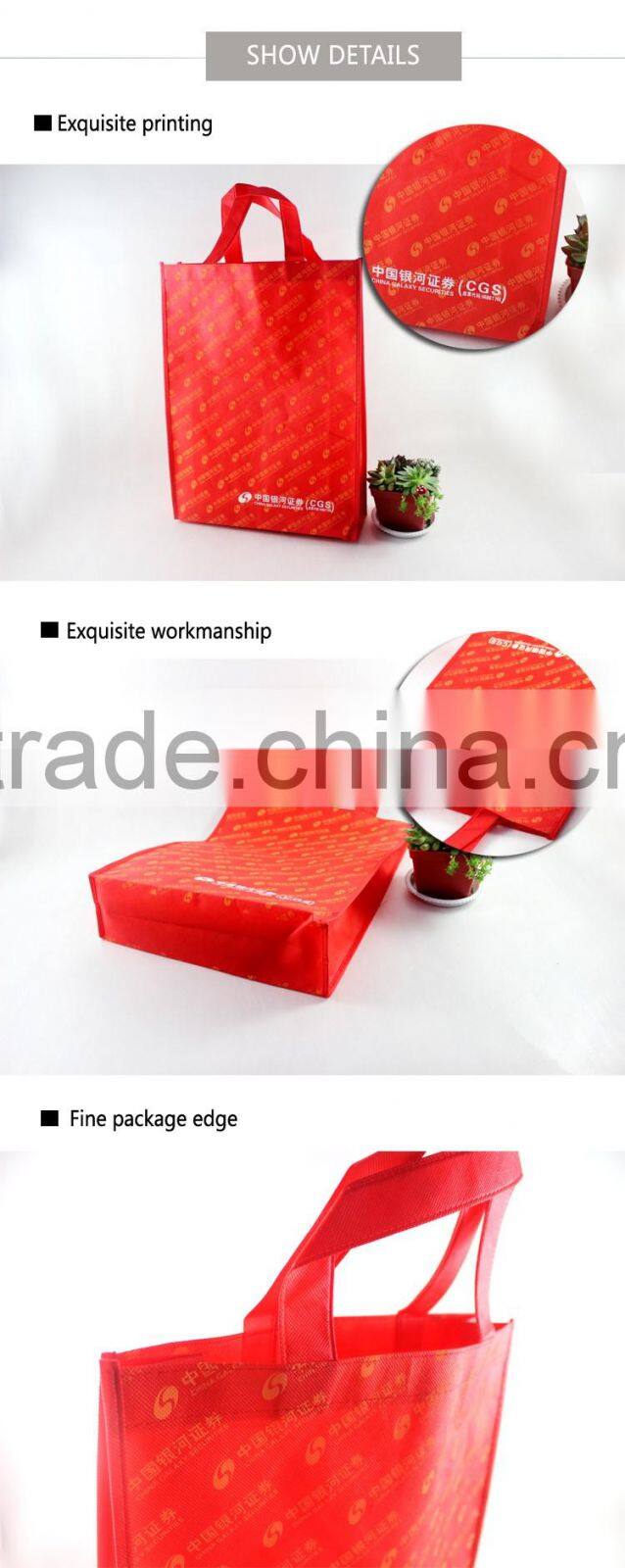 1.specificationMateria:non-woven fabric,non-woven with lamination,eco-friendlyAny sizes and designs are available