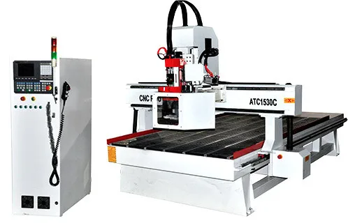 ATC Woodworking entry-level CNC Routers standard features include a 12 HP HSD high frequency automatic tool changer spindle with an 8 Position tool holder rack(in linear type or rotary carousel type, multi-zone vacuum t-slot table combination, and material placement stops and are manufactured using global state-of-the-art techniques with all steel construction.