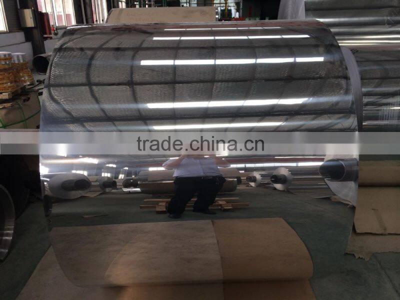 Laminated aluminum mirror( cladding aluminum mirror): by adding a mirror film on the surface of the aluminum basic sheet via the machine. the reflectivity of which is usually about 89%