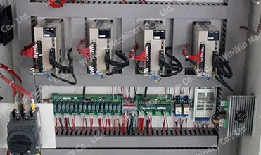 Aluminium Profile Cutting Machine standard features include an Italian high frequency spindle, the spindle(B axis) can rotate +/- 90 degree, for side slot milling, drilling, cutting, keyhole, very suitable for processing of on different surface carving.
