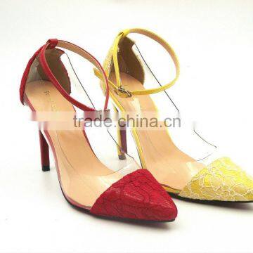 women heels pointed toe fancy lace high heels Buckle Strap elegant shoes