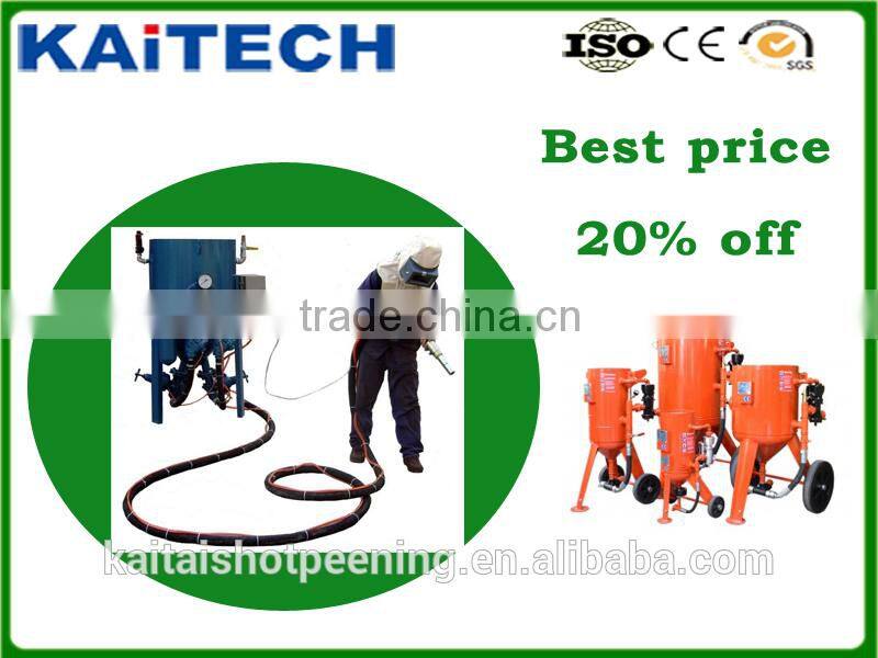 Sand blasting tank is the core part of sand blasting system. Its performance directly affects whether the sand blasting system is normal, efficient. The working principle of the sand blasting tank is pressure type: The tank can work with multiple abrasive control valve at the same time, while high speed spray gun work.It has a high degree of automation and high working efficiency.