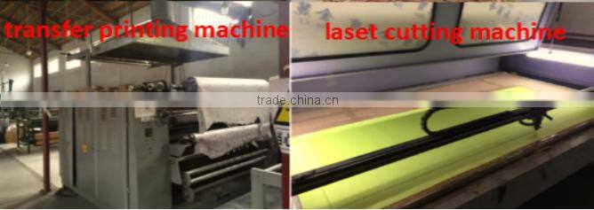 We have an auto cutting fabric machine, one transfer printing machine and more than 20 laser cutting machines in our own factory which can help save more labor costs and other more charges for you.