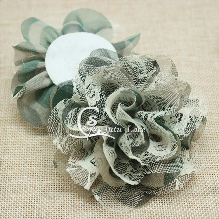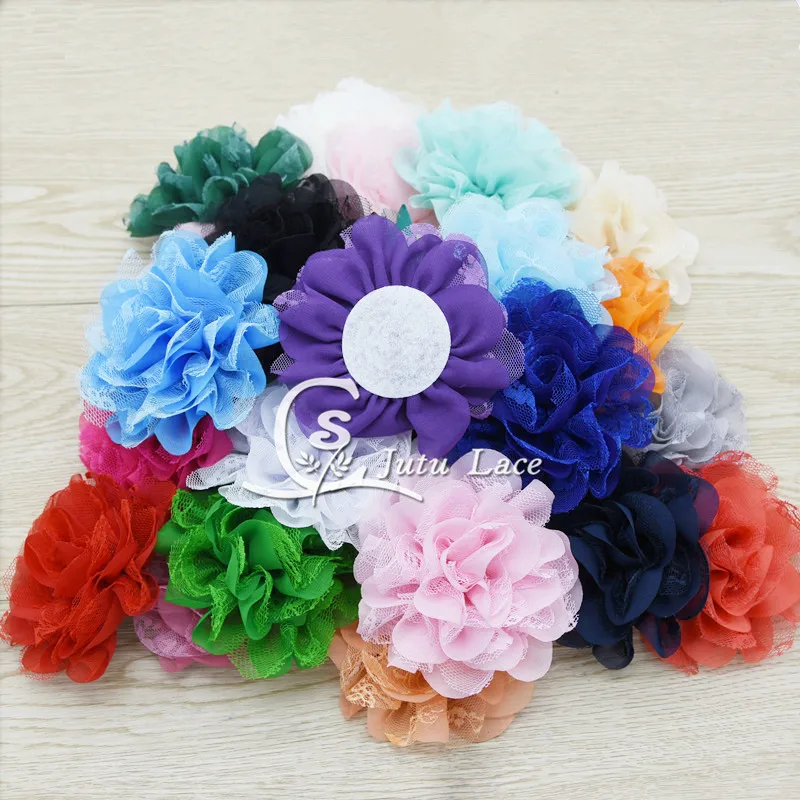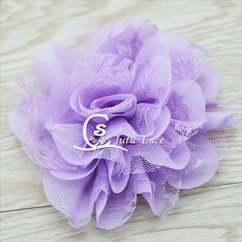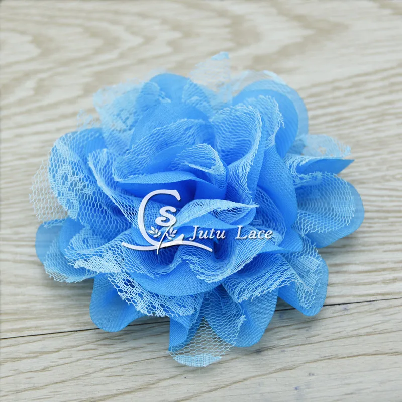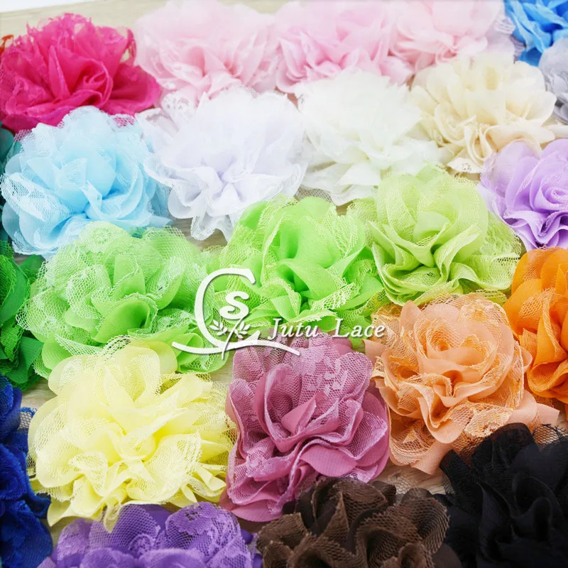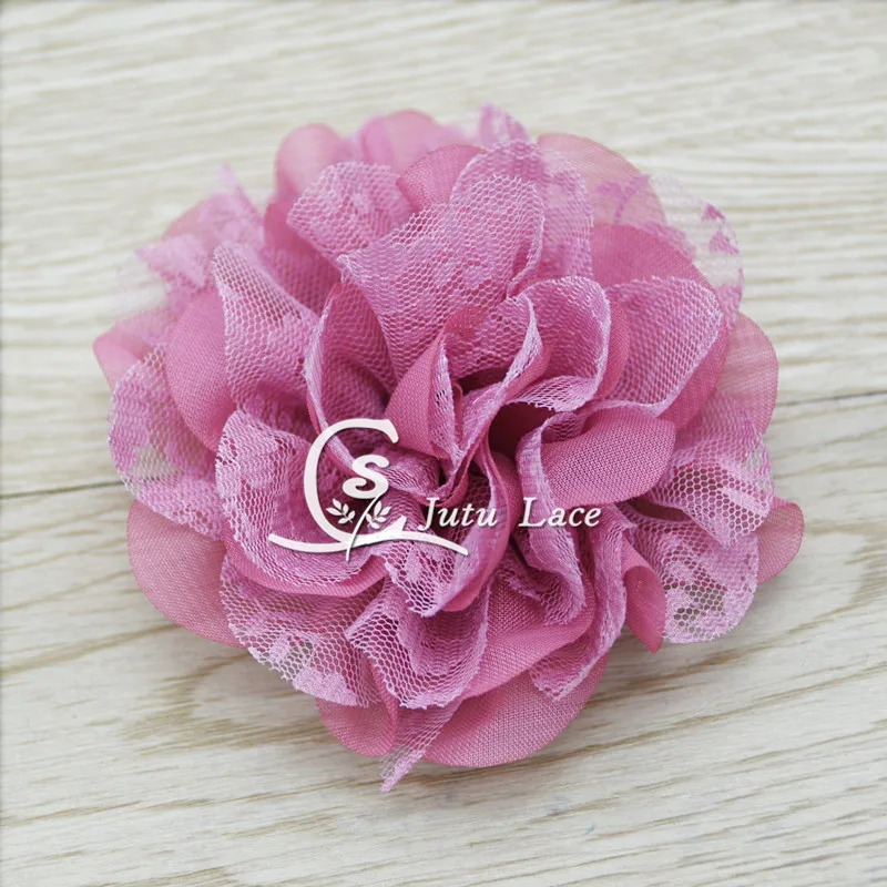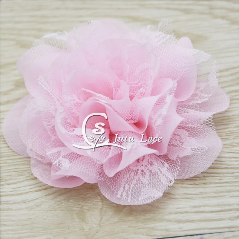 3.75 Inch Chiffon Lace Flower in Pink - Solid Chiffon Flower With Lace- Flower Head for Headbands and DIY Hair Accessories