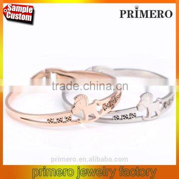 Custom jewelry 316l titanium steel rose gold Plated charm bracelets horse bangles |