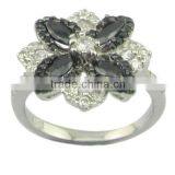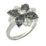 Flower-shaped White and Black Zircon Silver Jewelry Two-tone Plating Ring