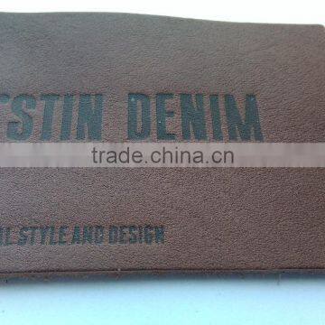Custom Real Leather Rectangle Brown Embossed Slim Patch for Jeans