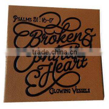 Custom Good Quality Brown Embossed Leather Logo Patch