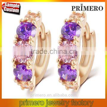 Hot Sell Gold Plated Purple Crystal Jewelry Round Zirconia Design Earrings Chinese |