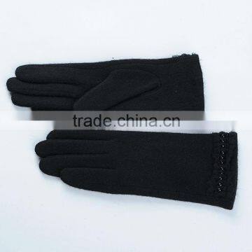 black color beautifully hand crafted lady Wool Gloves with lace decoration
