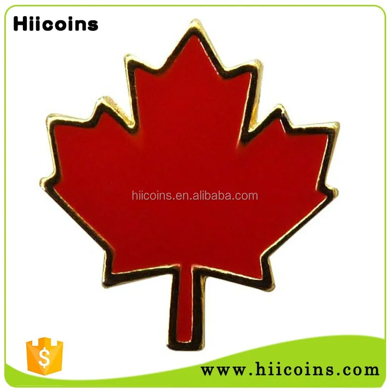 Gold plating hard enamel red color Canada flag maple leaf badge