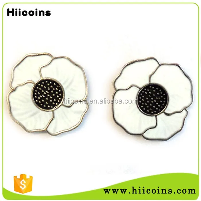 Hot Selling Promotion Hard Enamel Metal Custom White Poppy Lapel Pin