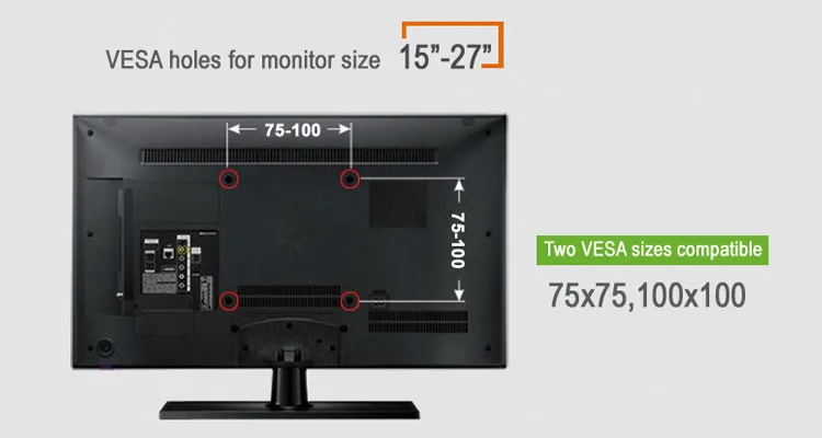 Should comfirm there are 4 installing holes in the back of monitor or TV before you purchase it.And make sure the weight of monitor or TV under the maxload of mounts.