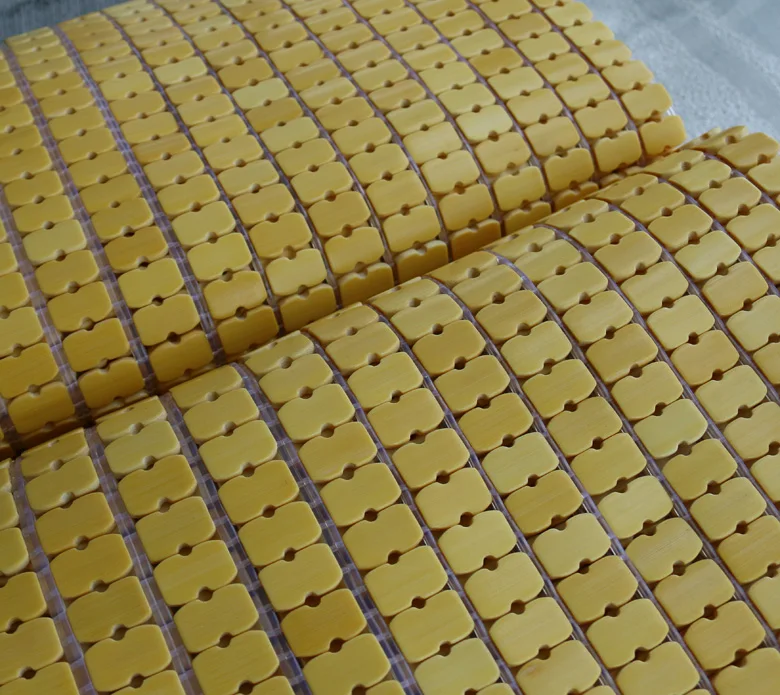 C. The plenty gaps between bamboo beads, enable the air flow through the mat to bring away heat.