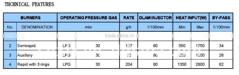 Δ Gas type :LPG(2800PA),NG (2000PA)