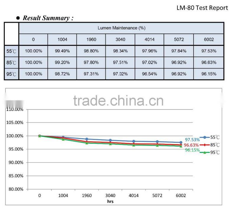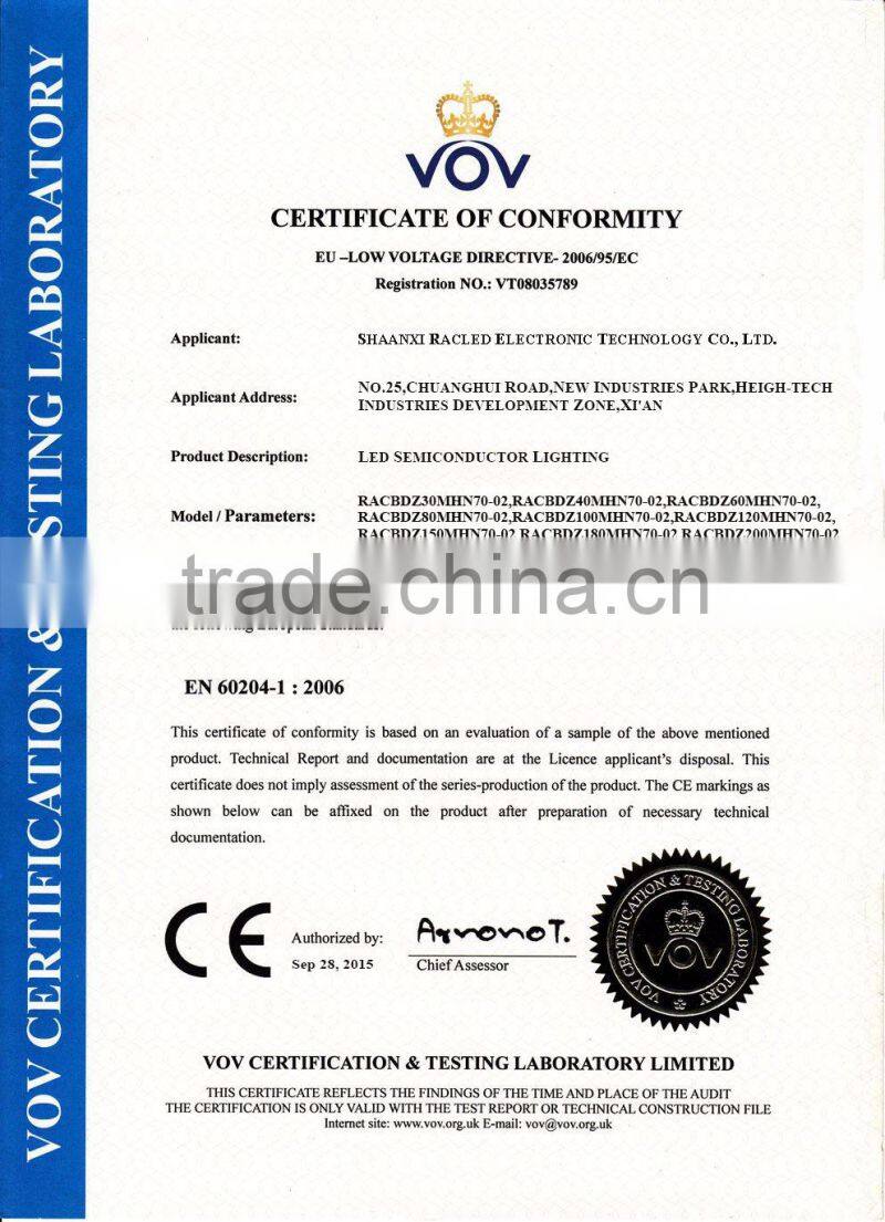 5)Привод неизменного тока с высокой надежности, коэффициент мощности> 0.95, эффективность электропитания >90%, срок службы >50000h, светильник пропускает сертификацию UL;