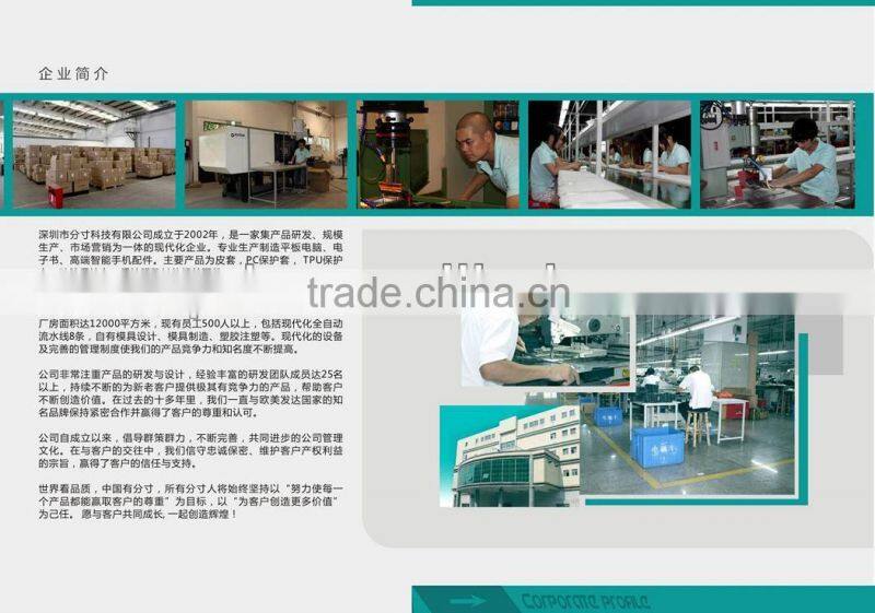 We are specialized in cases for tablet,mobile phone and ebook.And our factory now is with more than 500 workers.Based on our unique design and high quality products,we export more than 500000pcs cases to all over the world,such as America,Europe,Asia etc.