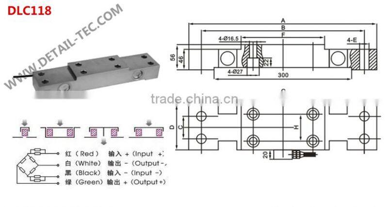 Model: DLC118 Category: Bridge Load Cell Range: 1t, 2t, 3t, 4t, 5t, 10t, 20t Dimension: 350*75*56/410*100*56mm Material:Alloy steel,stainless steel Application: lifting weight limiter, automobile examination Characteristic: lifting weight sensor,Lifting weight limiter sensor | |||||||||||