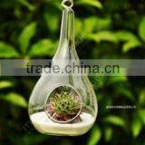 Hanging Water Drop Shaped Glass Vase, Air Plant Terrarium, Flat Bottom,