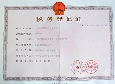 Tax Registration Certificate.