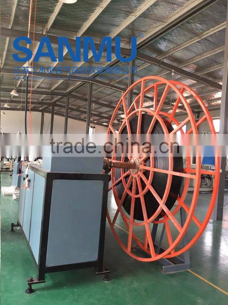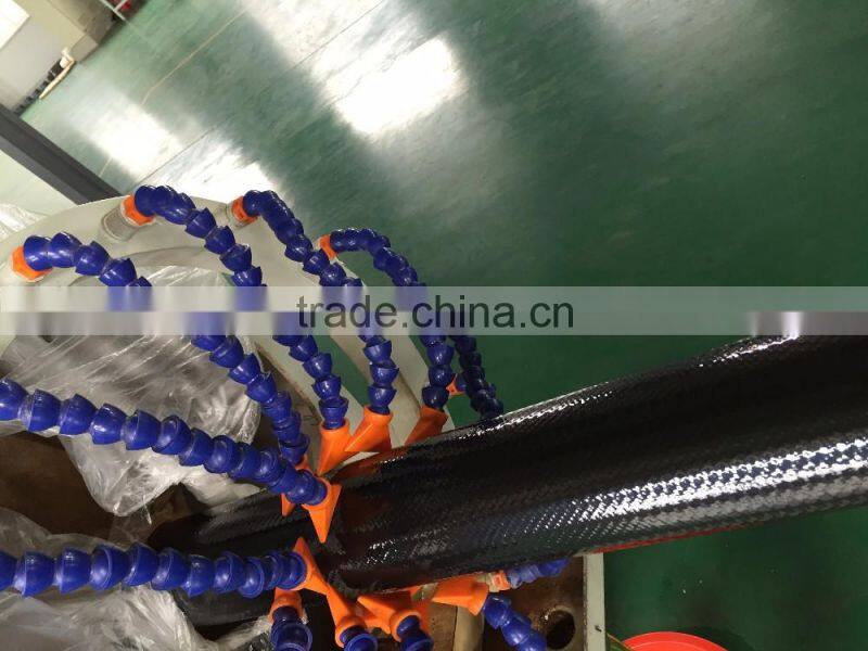 High pressure TPU hose is the company’s core product ,and it is a kind of lay-flat water and oil discharge hose(antistastic and inflamble ) .it consists of TPU liner ,polyester reinforcement and TPU cover.Their Nominal diameter, from DN25 to DN350,Working pressure ranges from 150PSI to 450PSI,and length ranges from 20m to 200m.It has the features of bearing high pressure,durable,Corrosion resistance, aging resistance,and transfers for water,oil , gas and other mediums.This hose produced by green and environmental materials ,and not polluting the transfer mediums,used for shale gas exploitation,coal mines,fuel and oil industries,water discharge,agriculture irrigations ,flood and fire disasters ,etc.