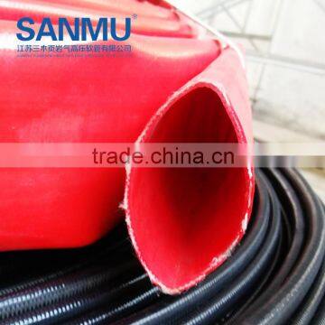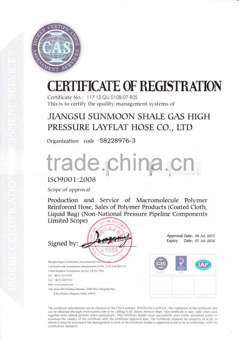 In order to meet the demands of international market ,it has researched and produced different durable ,high pressure two -sided layers TPU lay-flat hoses,Nitrile rubber hoses and PVC-coated hoses indepently,their Nominal diameter from DN25 to DN350,Working pressure ranges from 150PSI to 450PSI,and length ranges from 20m to 200m.These different hose are used for shale gas exploitation,coal mines,fuel and oil industries,water discharge,agriculture irrigations ,flood and fire disasters and so on.At the same time ,some of hose has been patented by National Constitute and Authorities in China.Company has won the good reputations and trustworth from clients abroad and the domestic.