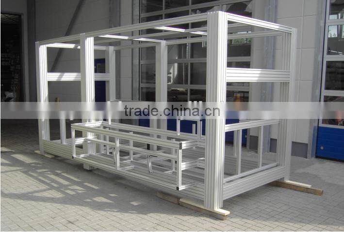 Our Aluprofile is used for aluminum display and exhibition shelf ,aluminum conveyors system,production line, work bench, machine frames, LINEAR MOTION FRAME and stairway-platform-system and so on.