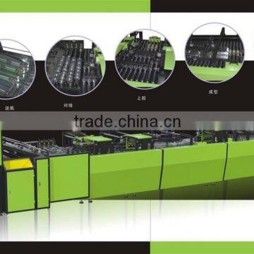Auto delivery of creased paper, line aligning, gluing, tube formation, folding impressing and bag tube output, it adopts water-soluble cold glue and glue spraying system.