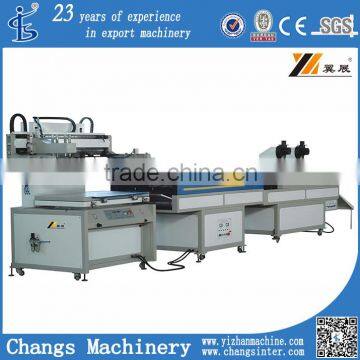 This machine is composed of printer part, take-off machine and UV dryer. It is a 3/4 automatic production line which feeds material to printer by human hand, then takes off material automatically. After printing arm and printing table, suck and pull out the printing material, then send it to nest working procedure (drying and paper collecting). It can not only save human labor, but also improve working efficiency of printing machines. It is fit for printing on flexible material such as paper and polyster plastic film and so on.