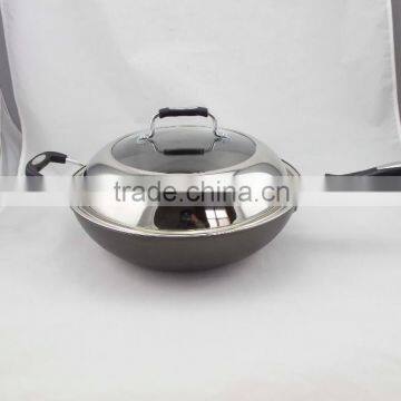 Hot Selling/wholesale China Aluminium Non Stick Semi Stainless Steel Lid Wok Fry Pan