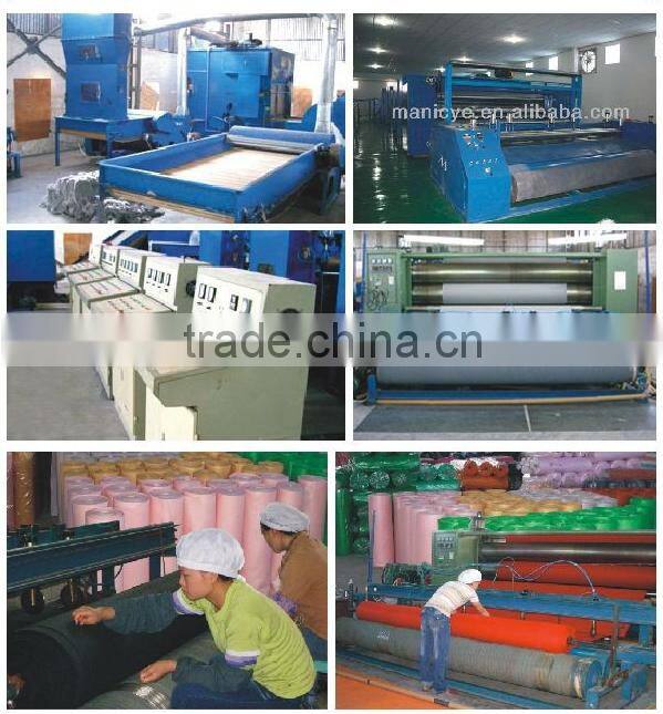 MANICYE NONWOVEN FIBRE PRODUCTS CO.,LTD is a professional manufacturer for all kinds of needle punched nonwoven fabric,such as felt,cleaning cloth,speaker carpet,geotextile,carpet and so on.We highly hope to establish business relations with your esteemed company on the basis of mutual benefit in an earlier date.We will submit our best price to your upon receipt of your concrete inquiry.