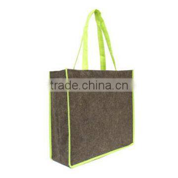 Environmental friendly shopping bag.Environmental friendly shopping bag. Dimension: H34.5 x L38 x 13cm, Handle: 54cm. Color: Brown with lime trimming.