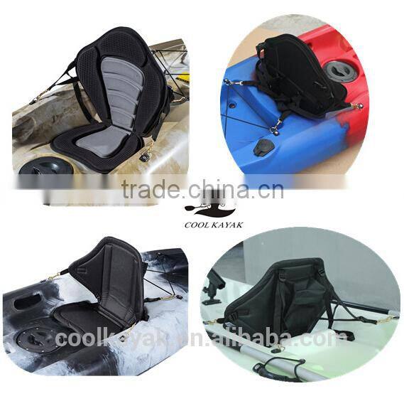 Two different back seats from Cool Kayak Manufacturer. One deluxe backseat can be fixed with rod holder or bag. Another is normal back seat.